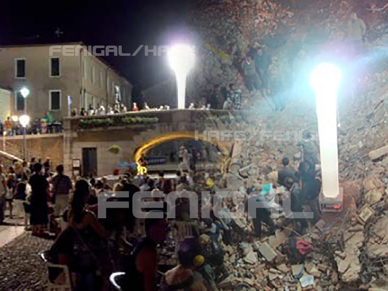 این سیستم از ژن داخلی 1.2KVA ، دو دمنده ، چراغ هالید فلزی 400 وات تشکیل شده است.ابتدا کاربر باید ژنکت را روشن کرده و سپس دمنده ها را باد کند تا پارچه را در ارتفاع 4.5 متری از سطح زمین باد کند.بعلاوه ما چراغی را روشن می کنیم که مساحتی بالغ بر 10،000 متر مربع را روشن می کند.
