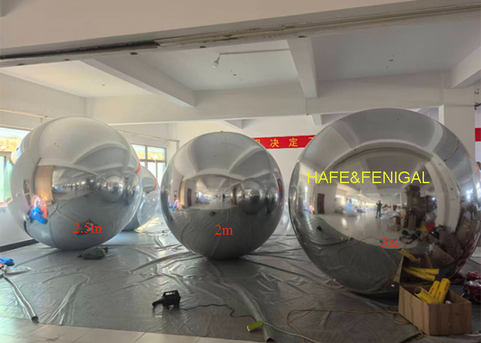 2 متر، 2.5 متر، 3 متر بالن های آینه ای نقره ای PVC آویزان از سقف استفاده می شود